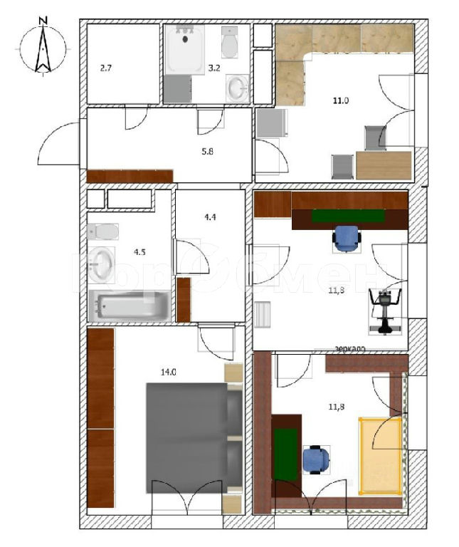 Комнаты: 12 12 14 м2